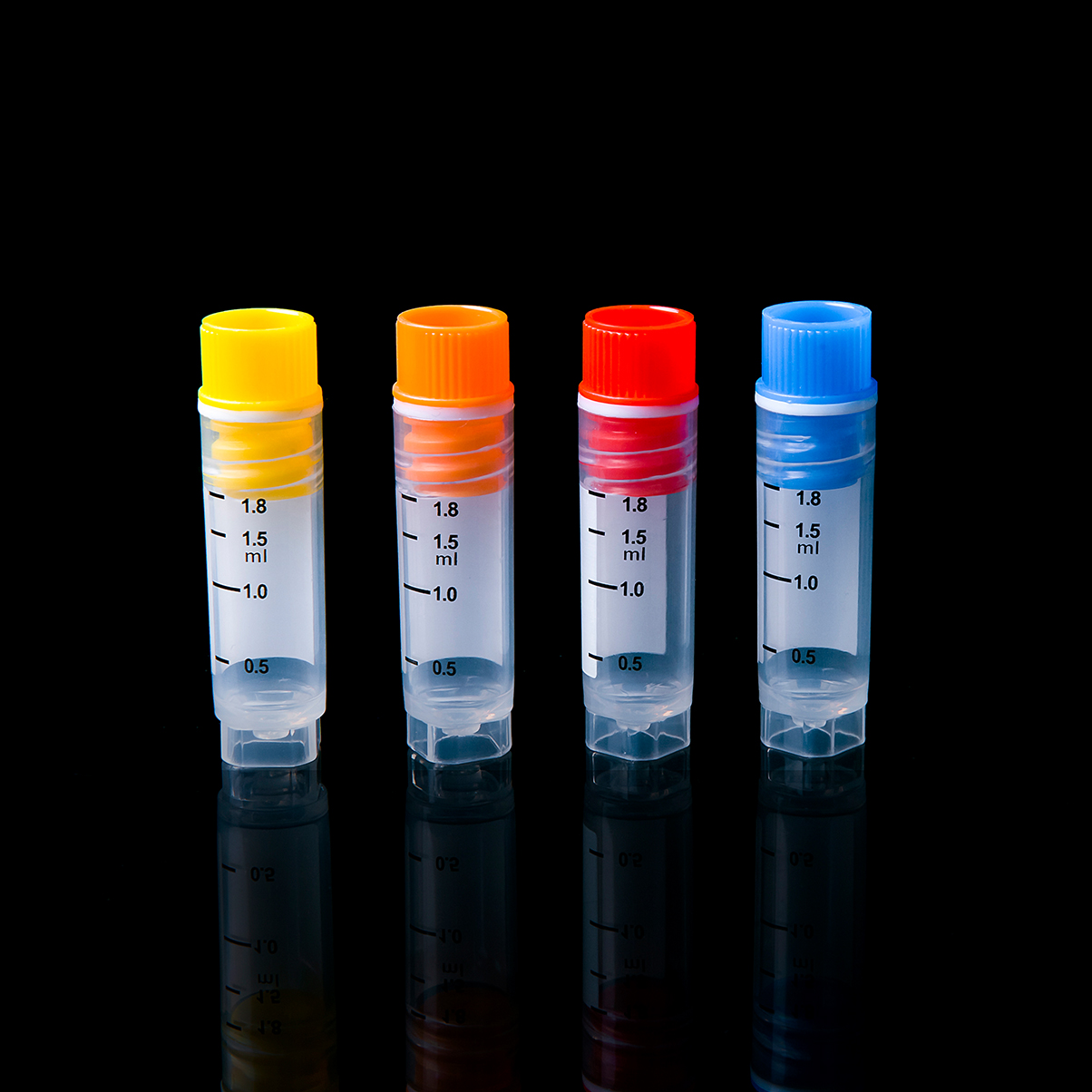 四色旋蓋,管體黑色刻度印刷,預(yù)置白色書寫區(qū)。